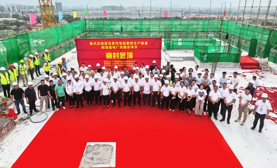 2024 年 11 月 4 日上午 10 点,桦桦数控板式定制家具柔性智能数控生产装备制造基地厂房建设项目在勒流街道中部产业园联结北路以南 2 号地块举行封顶仪式。顺策作为监理方,全程参与。