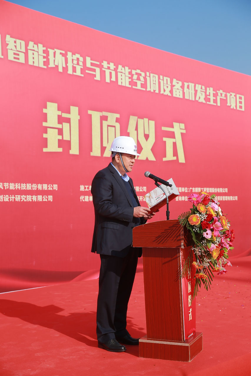 顺德高新区党工委书记杨艳生亲自莅临仪式现场并送上美好祝福,顺德高新区管委会主任金辉代表高新区发表致辞,对同方瑞风智能环控与节能空调设备研发生产项目的顺利封顶表示热烈祝贺。