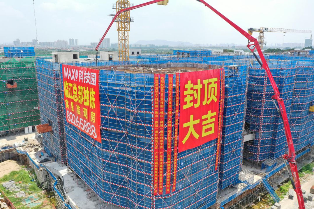 2025 年 7 月 9 日上午 11:30,MAX 科技园(佛山・禅城)一期封顶仪式在项目现举行。佛山市禅城区南邻东平路、东邻海滨东路及佛山大道高架的项目工地上,烟花爆竹燃放仪式点燃现场氛围。