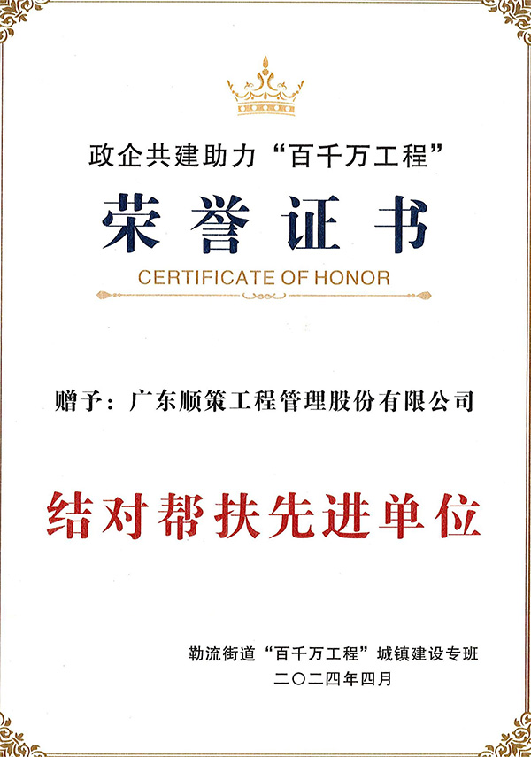政企共建助力“百千万工程“结对帮扶先进单位荣誉证书