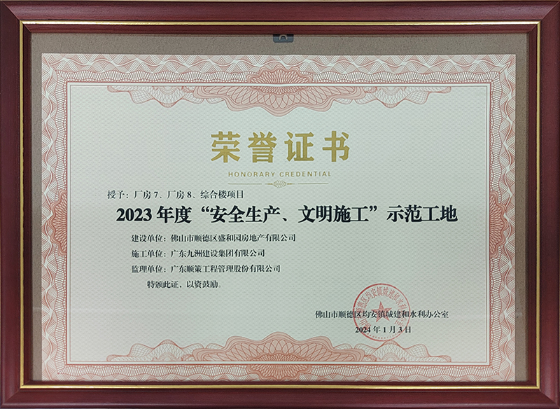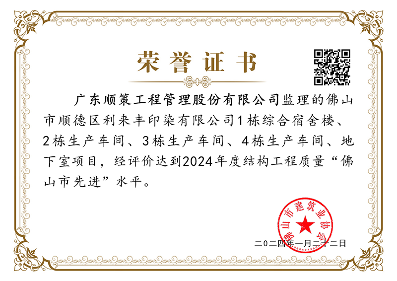 利来丰项目获2024年度结构工程质量“佛山市先进”水平