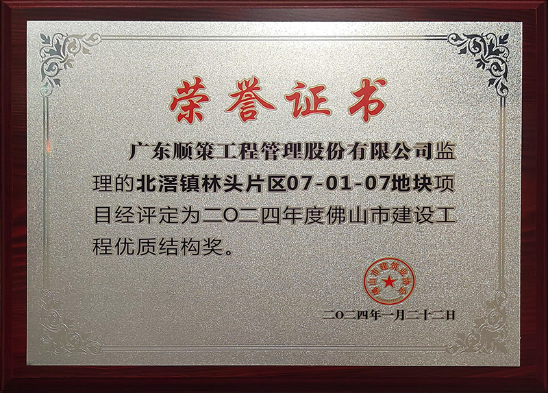 北滘林头片区070107地块评定为2024年度佛山市建设优质结构奖