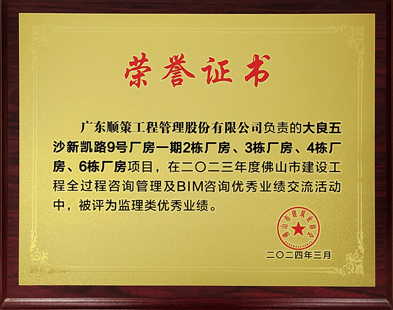 大良五沙新凯路9号厂房工程项目,佛山市建设工程全工程咨询管理级BIM咨询优秀业绩交流活动监理类优秀业绩