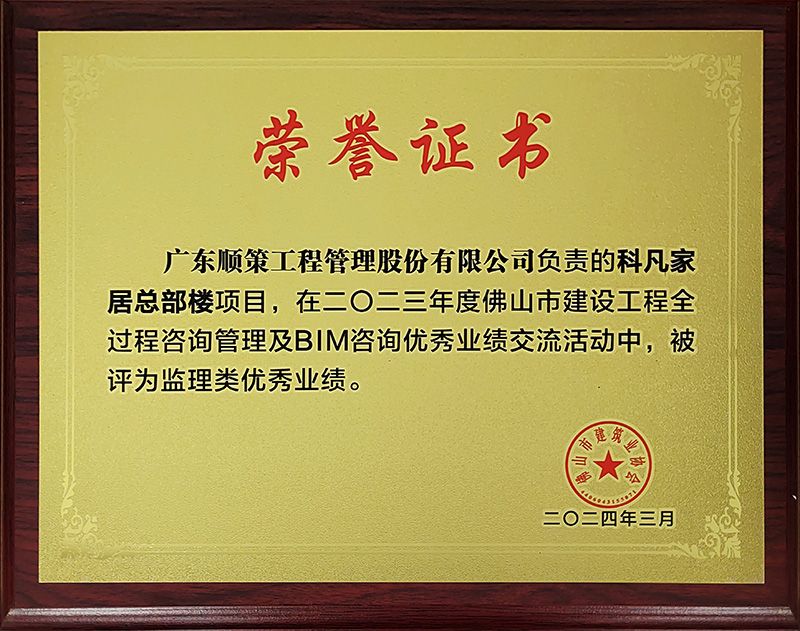 科凡家具总部楼工程项目,佛山市建设工程全工程咨询管理级BIM咨询优秀业绩交流活动监理类优秀业绩