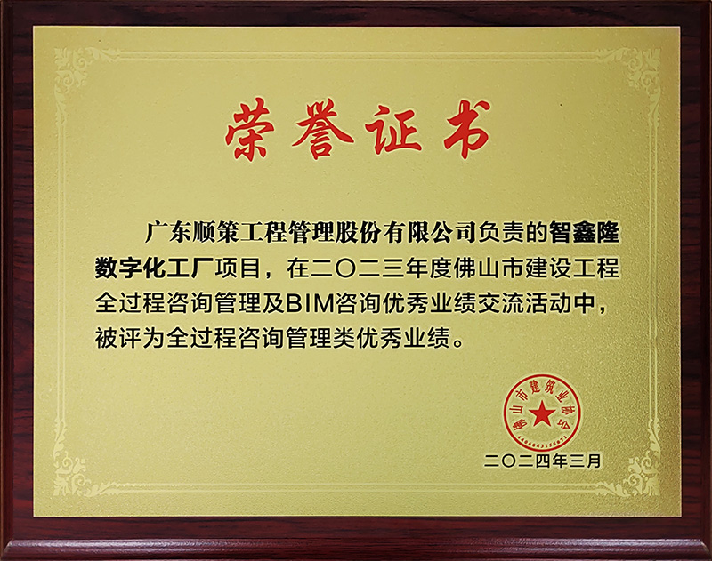 智鑫隆数字化工程项目,佛山市建设工程全工程咨询管理级BIM咨询优秀业绩交流活动监理类优秀业绩