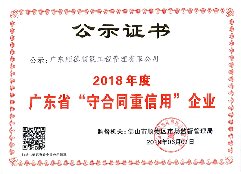 2019年守合同重信用证书