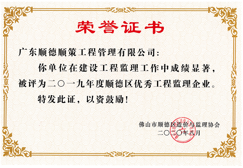 2019年度顺德区优秀监理企业