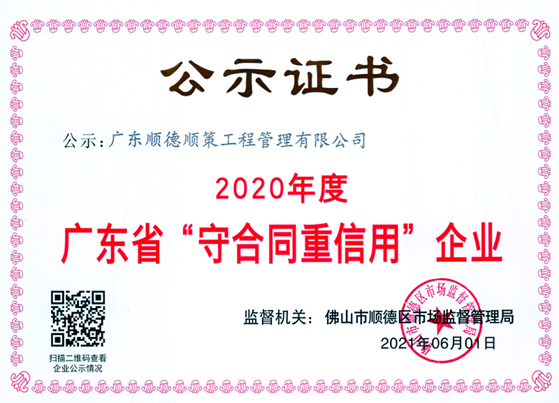 2020年守合同重信用证书