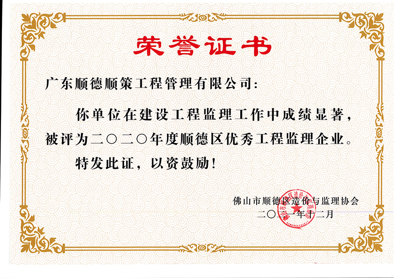 2020年度顺德区优秀工程监理企业